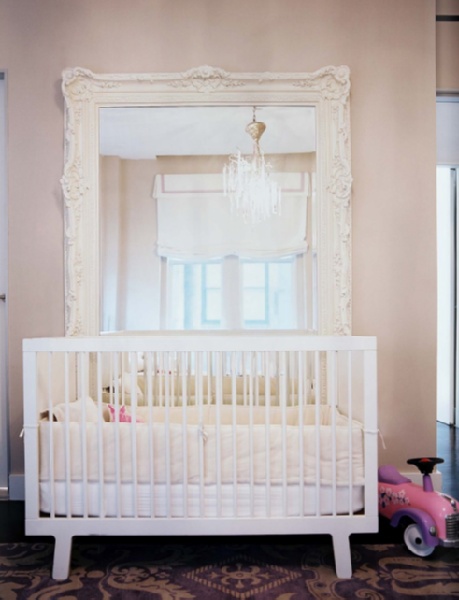 Next on the nursery agenda… I’m on a hunt for a mirror like this! Could totally be any color that I can paint. Seriously, how pretty is that???